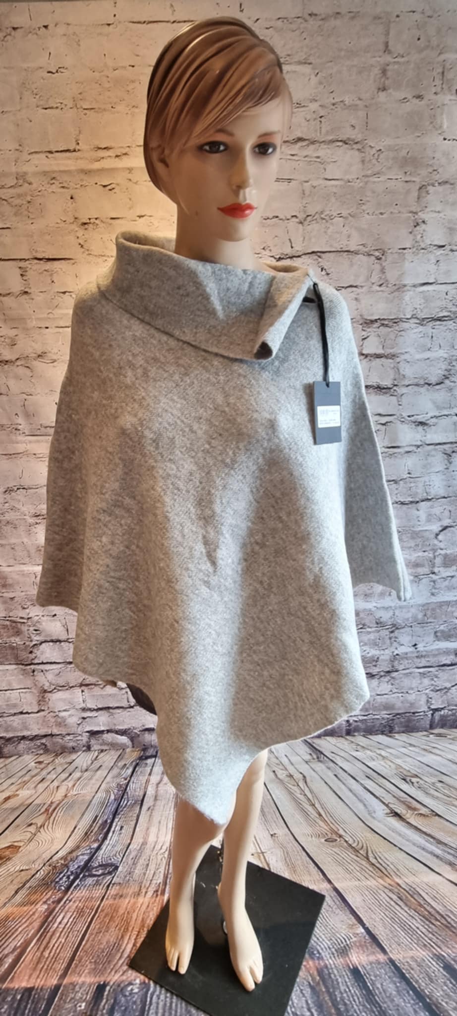 Stylish gray poncho with a wide collar. Made of soft, comfortable material – ideal for cooler days. The asymmetrical cut gives it a modern and elegant look. Perfect for both everyday and chic combinations.