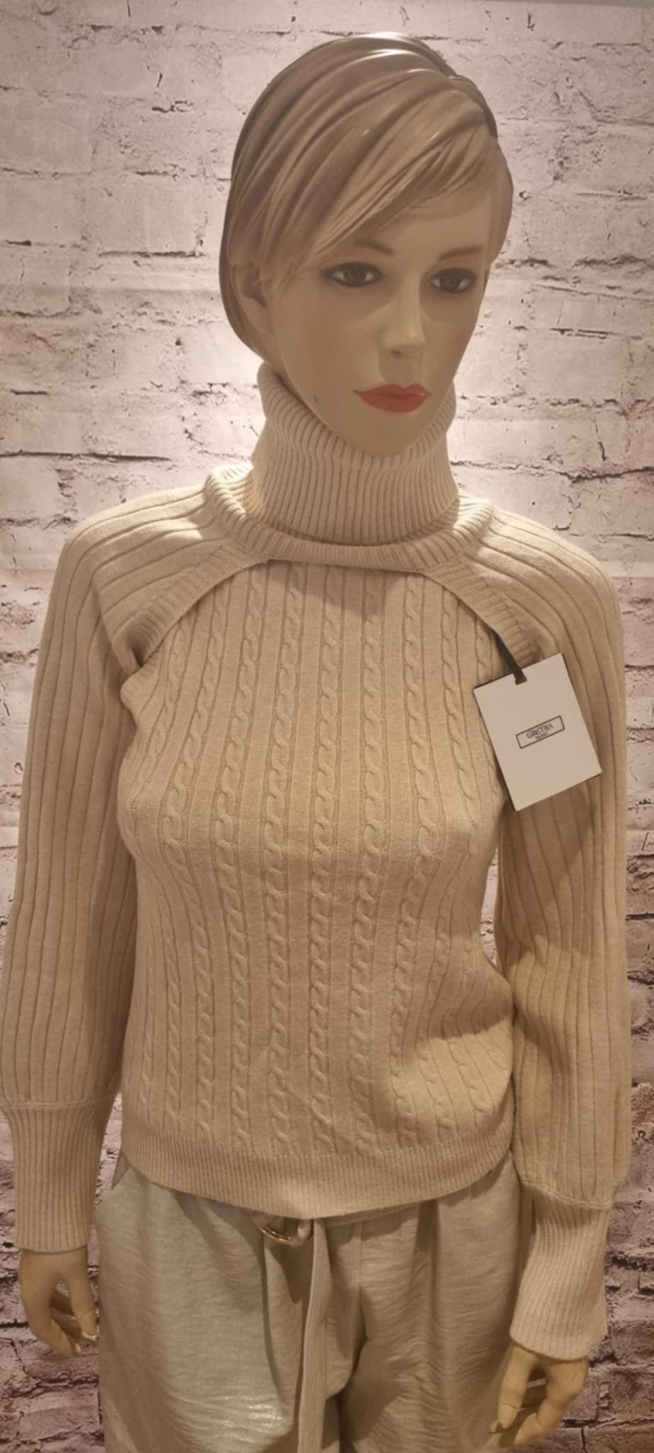 A stylish set consisting of a ribbed bodywarmer and a loose bolero with a turtleneck with long sleeves. Made of a soft, stretchy knit that fits beautifully. Wear the bodywarmer on its own for a minimalist look or combine it with the bolero for extra warmth and elegance. The timeless cream color pairs perfectly with both trousers and skirts. A true must-have for autumn and winter!